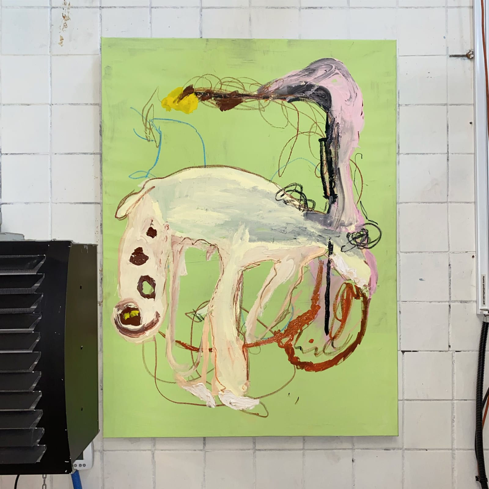 I never work with sketches but I always have the "blank page problem", so I start with a plan to do something, and in the process I develop images, which I continue to work with. I look into the canvas and try to see something there. I can think of a figurative thing and draw it, but it can turn out badly and end up with a completely different image. When I look at it again, it can suddenly turn into an abstraction, or a completely new figurative image can come out of it. I am very attracted by this moment of unexpectedness in artistic practice. And at the end, I look at the work and I am very surprised - I think, what is it anyway, where did it come from and how did it appear?