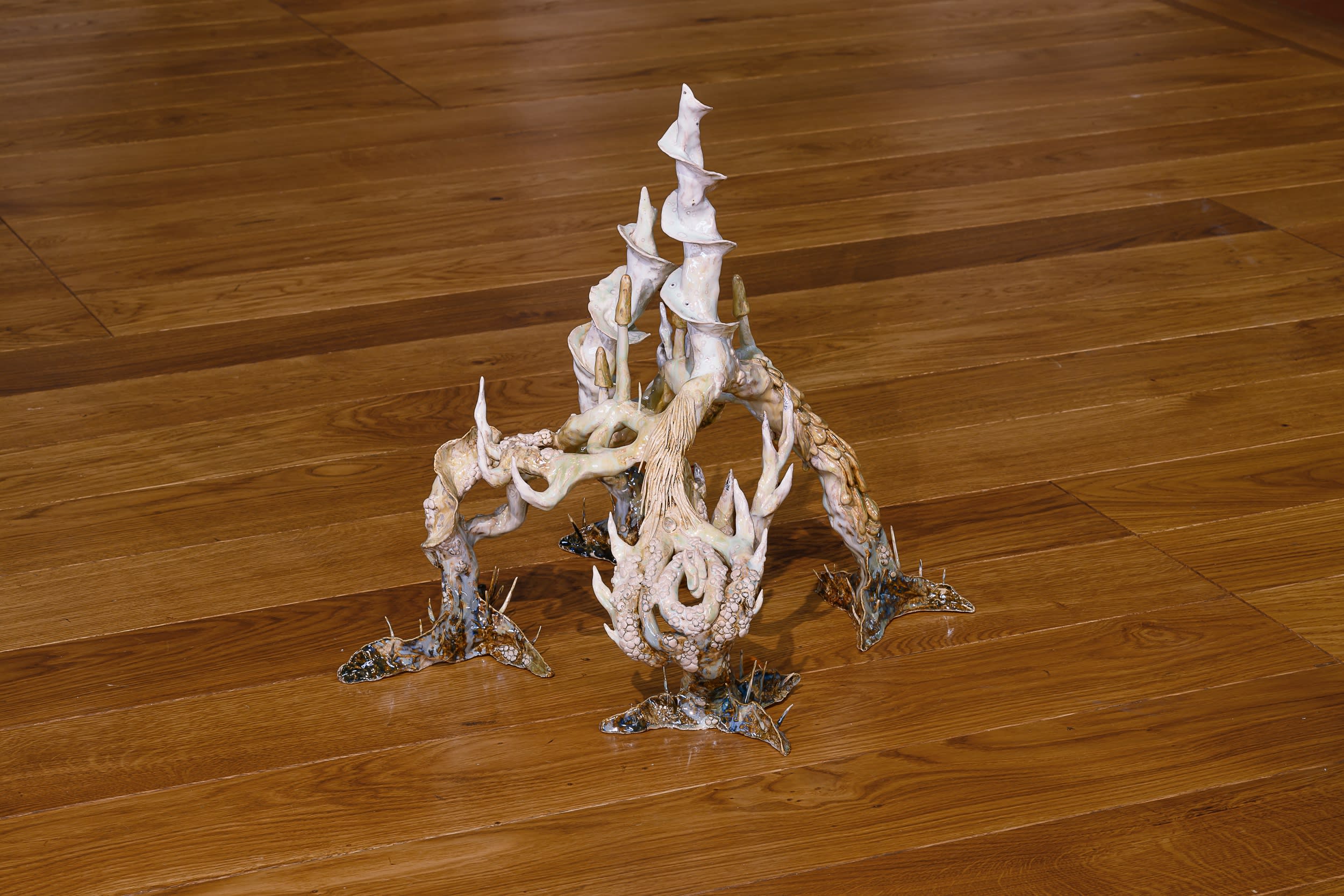 The exhibition titled "Floral & Machine" endeavours to explore the realm of contemporary art that engages with architectural and ornamental traditions. It aims to critically examine this artistic approach within the context of the Art Nouveau movement and the era that gave rise to it.